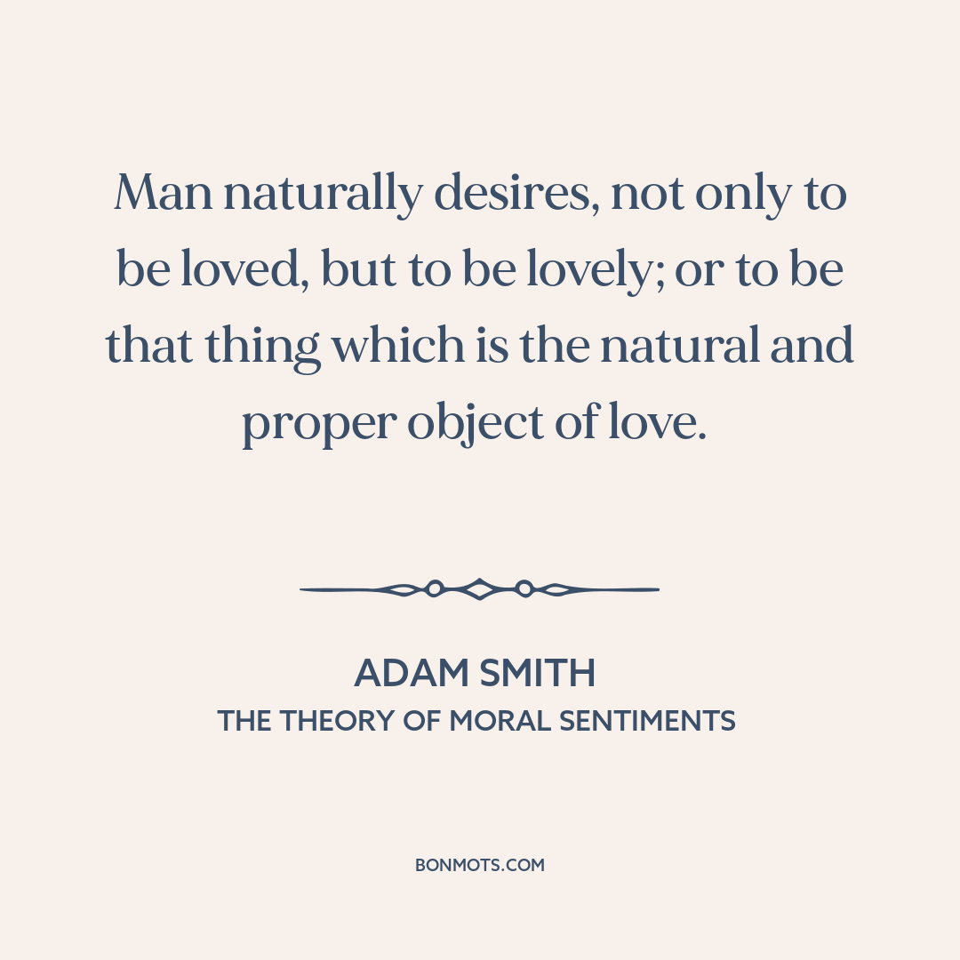 Man naturally desires, not only to be loved, but to be lovely; or to be that thing which is the natural and proper object of love.