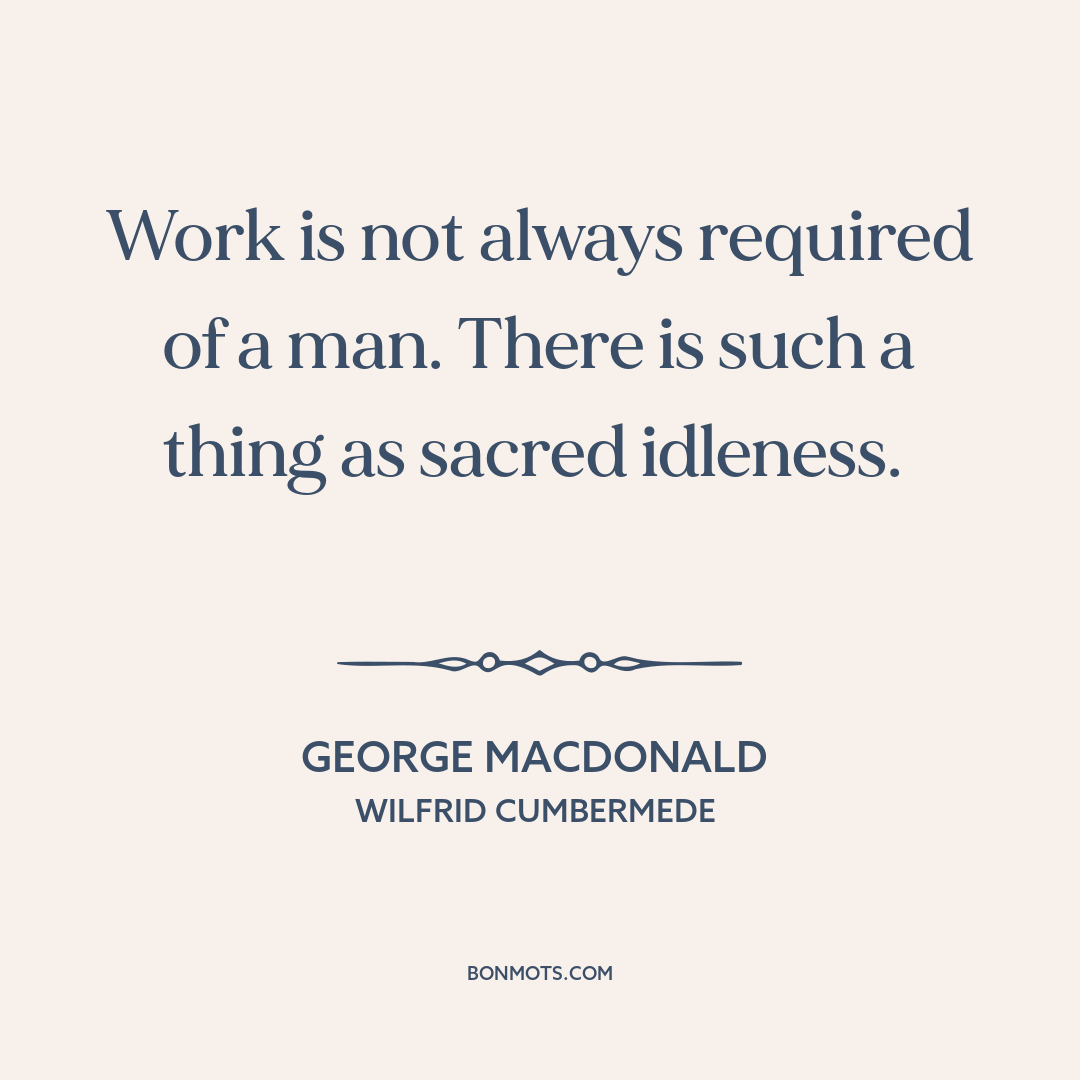 Work is not always required of a man. There is such a thing as sacred idleness.