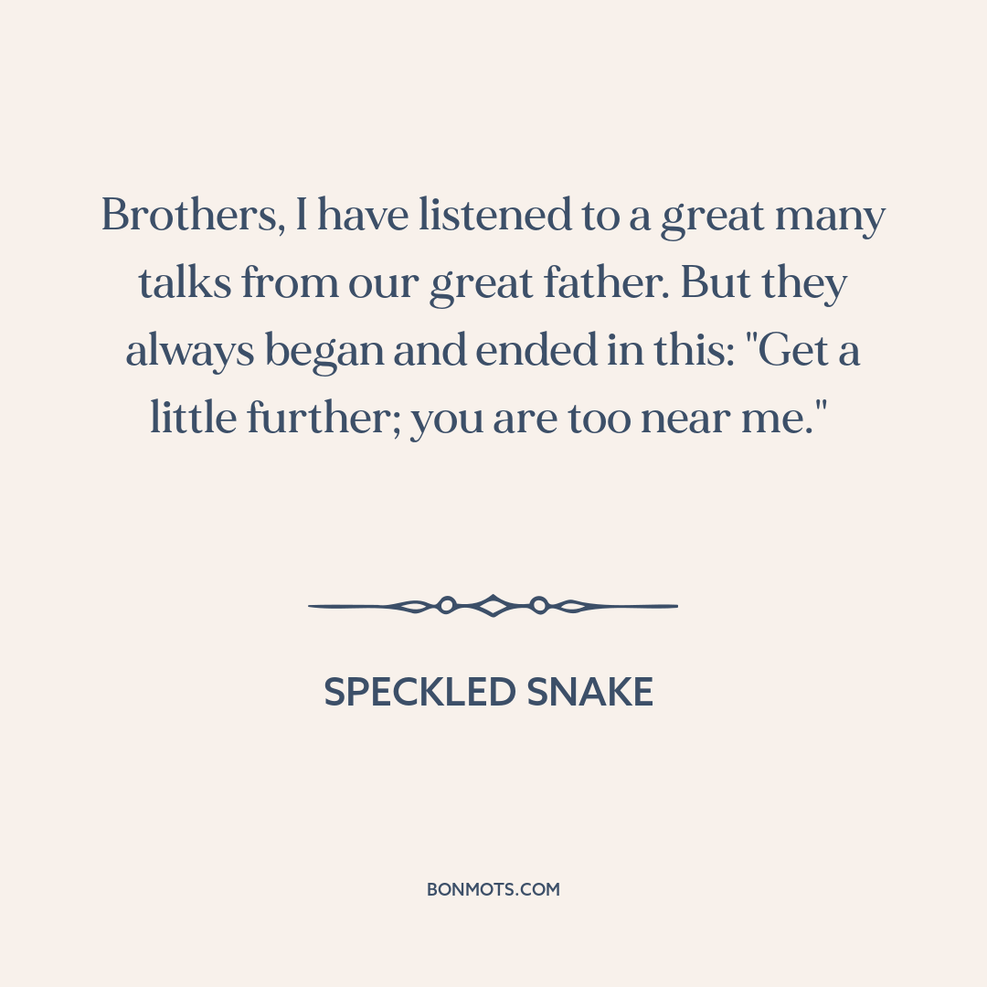 Speckled Snake. Quoted in A People's History of the United States: 1492-Present, written by Howard Zinn. Routledge, 2015, ch. 7.