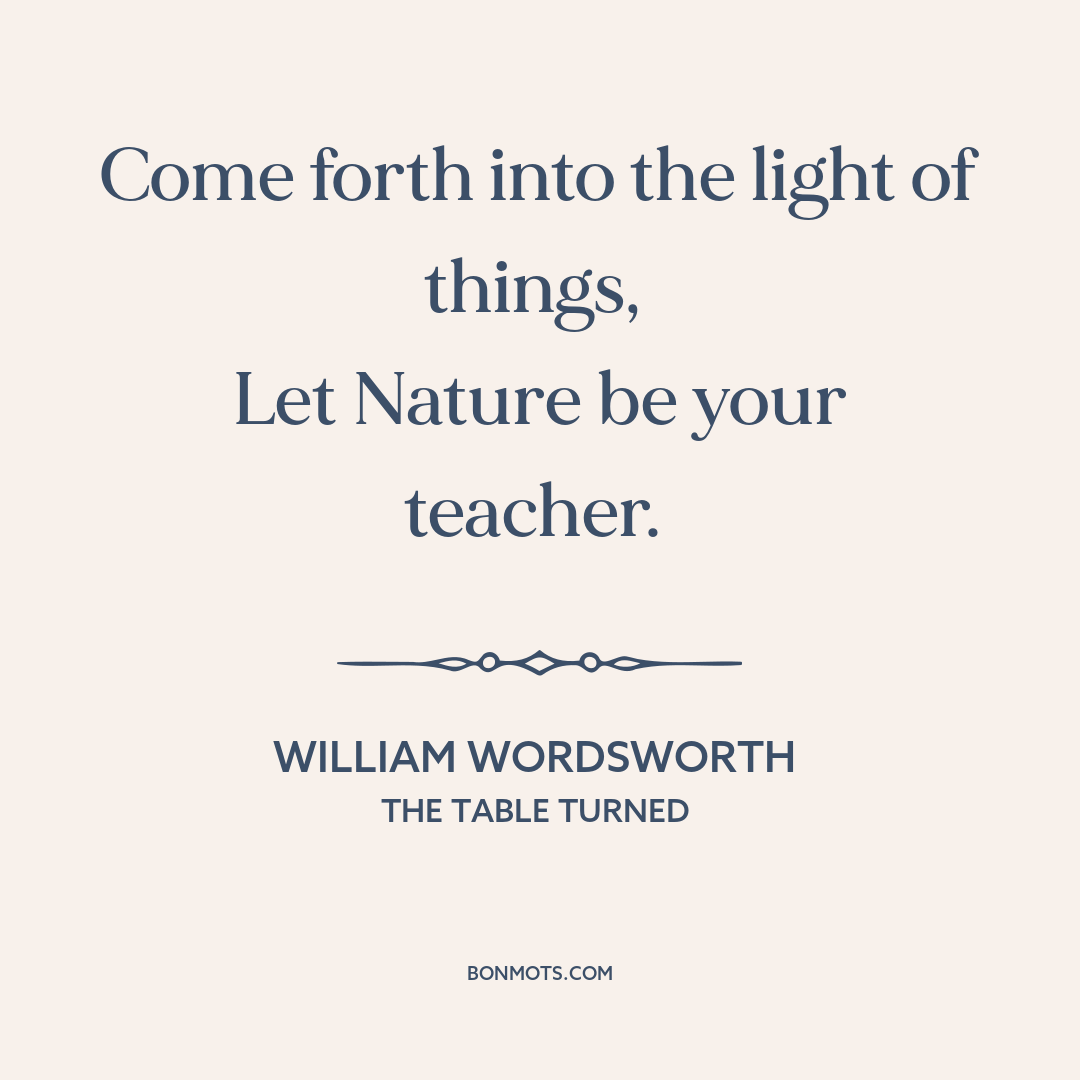 Wordsworth, William. "The Tables Turned." William Wordsworth: The Major Works: including The Prelude, edited by Stephen Gill. Oxford University Press, 2008, I. 15.