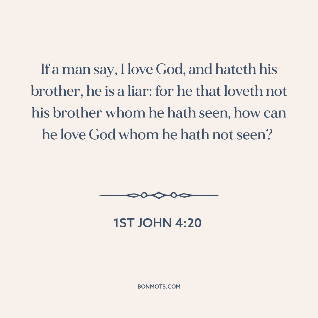If a man say, I love God, and hateth his brother, he is a liar: for he that loveth not his brother whom he hath seen, how can he love God whom he hath not seen?