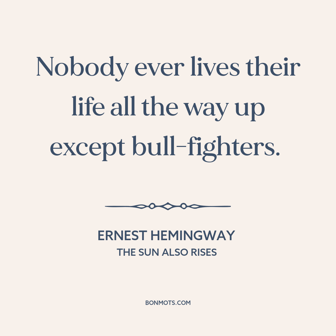 Nobody ever lives their life all the way up except bull-fighters.