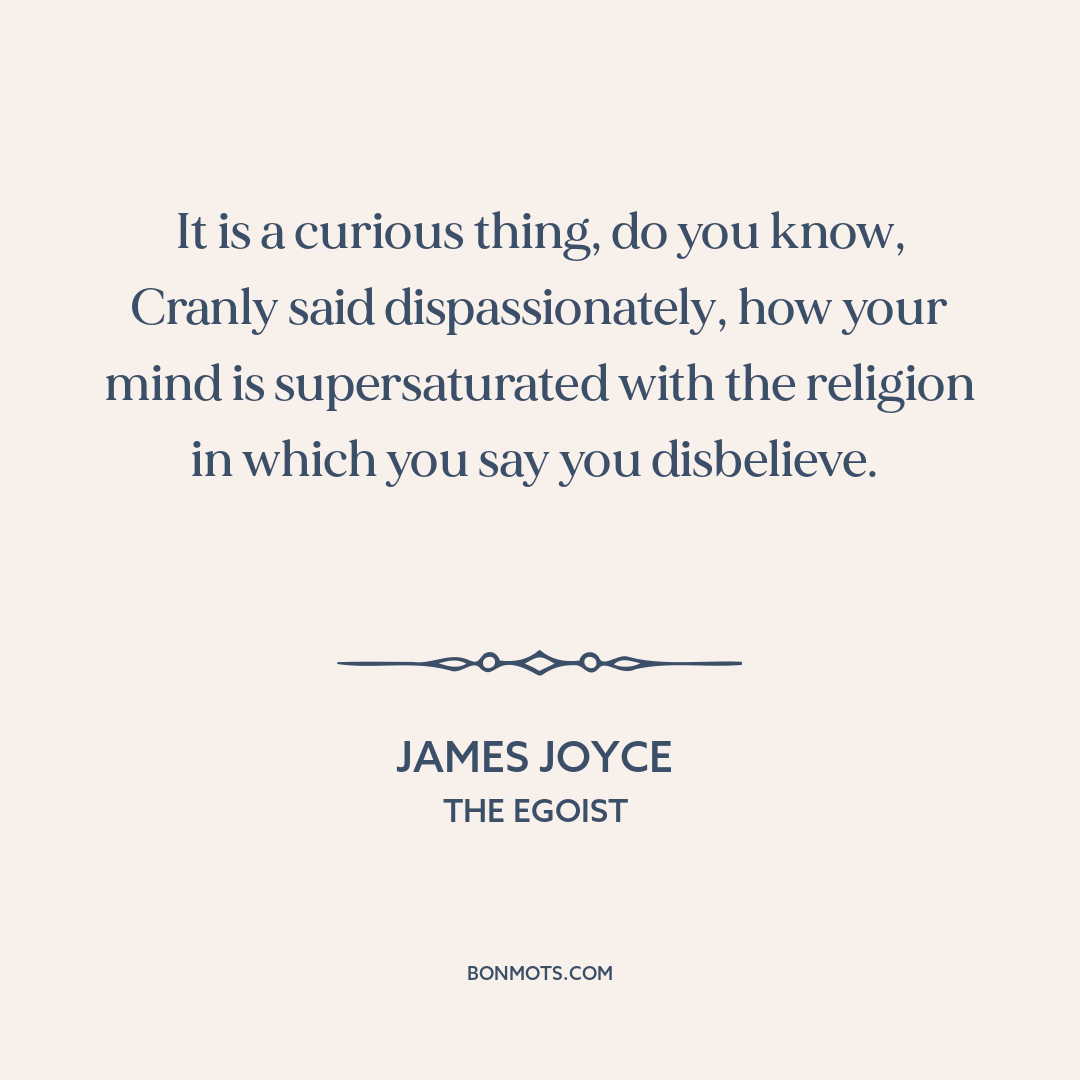 It is a curious thing, do you know, Cranly said dispassionately, how your mind is supersaturated with the religion in which you say you disbelieve.