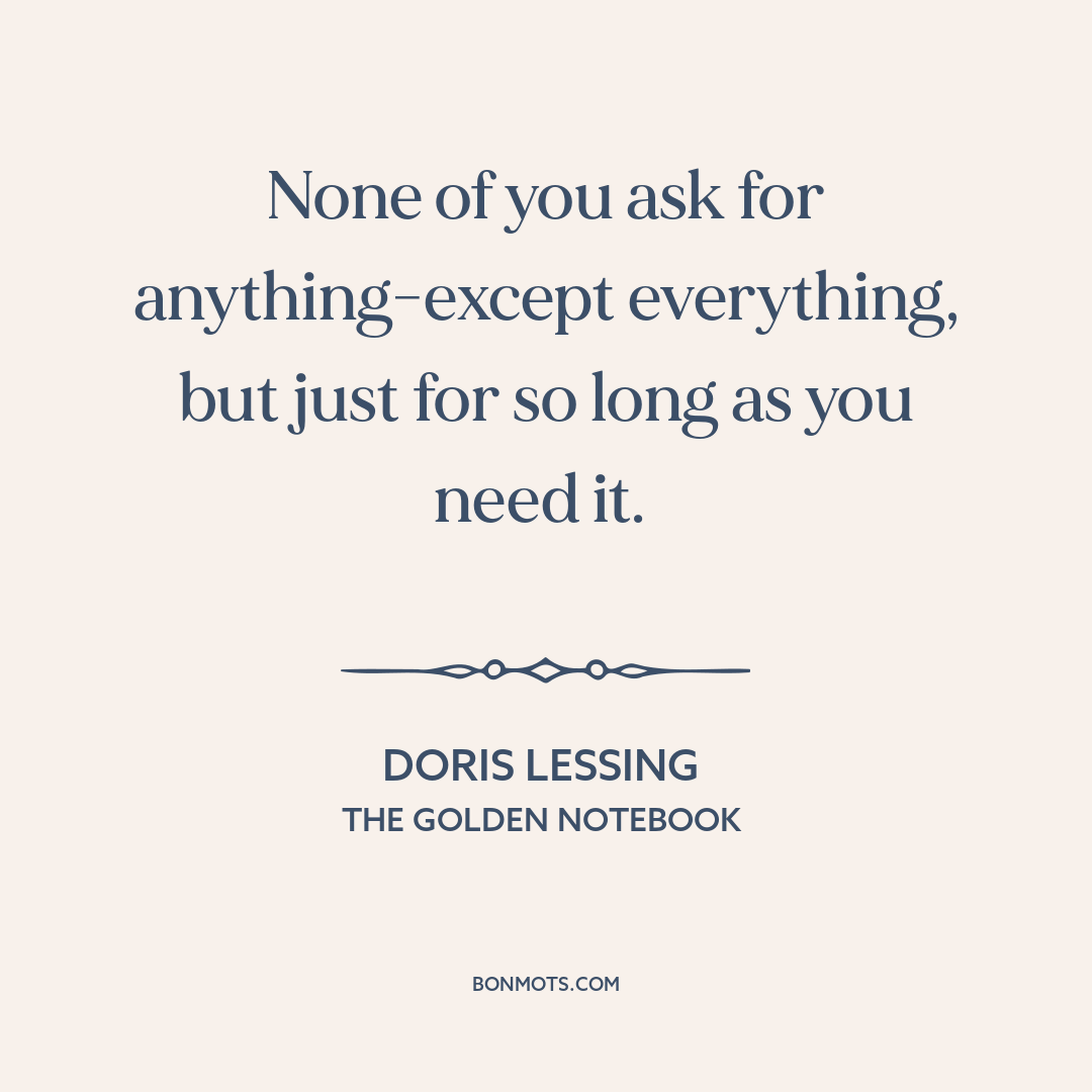 None of you ask for anything-except everything, but just for so long as you need it.