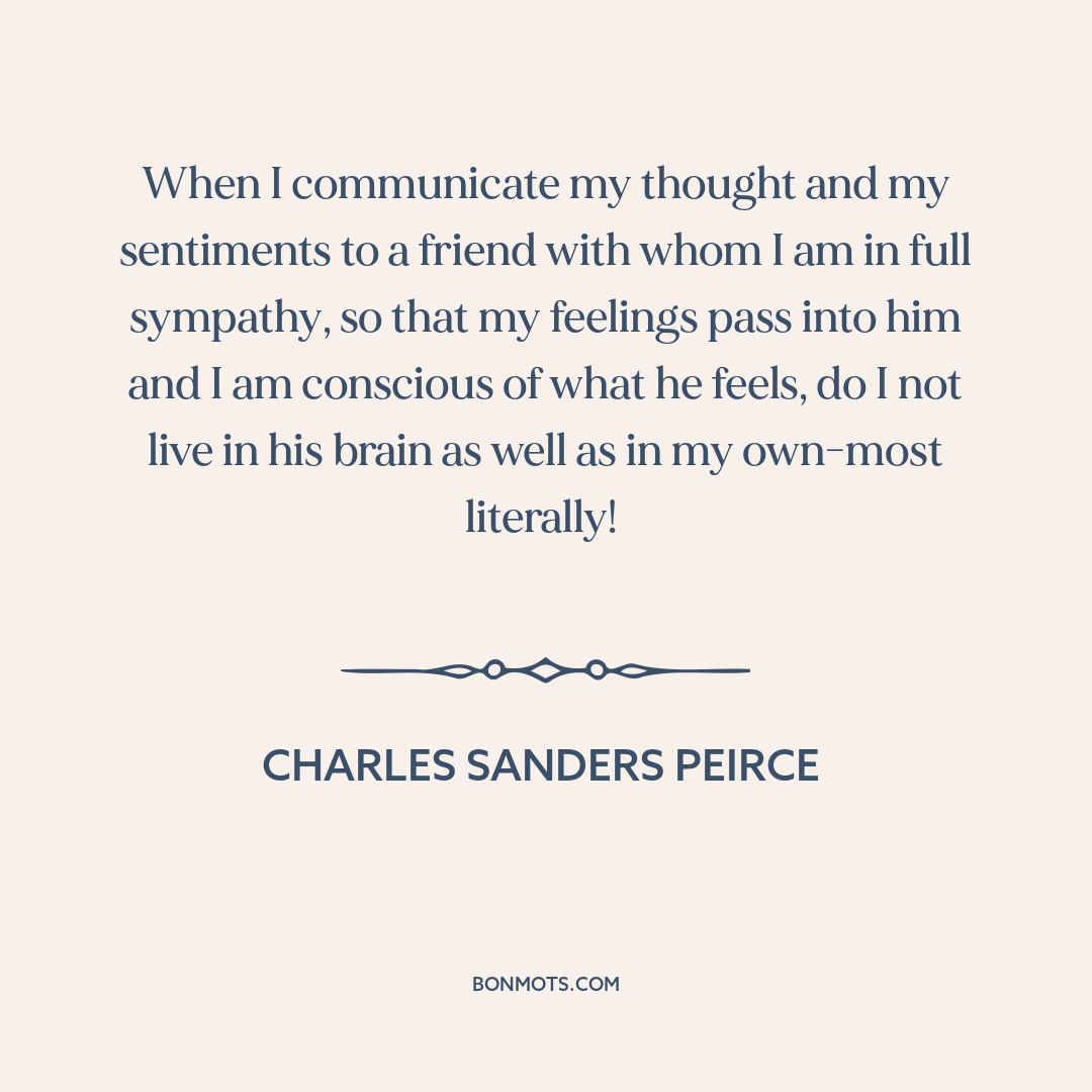 When I communicate my thought and my sentiments to a friend with whom I am in full sympathy, so that my feelings pass into him and I am conscious of what he feels, do I not live in his brain as well as in my own-most literally!