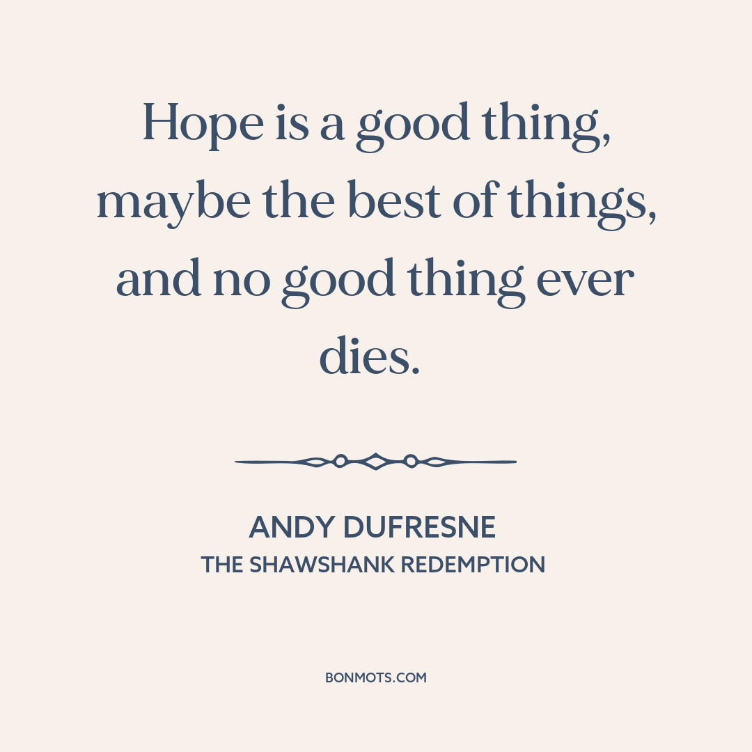 Hope is a good thing, maybe the best of things, and no good thing ever dies.