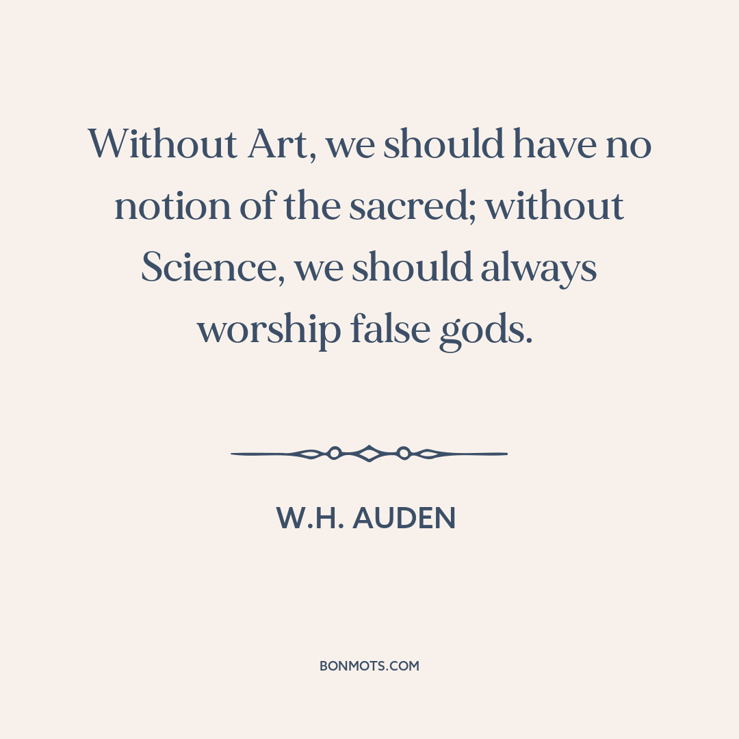 Without Art, we should have no notion of the sacred; without Science, we should always worship false gods.