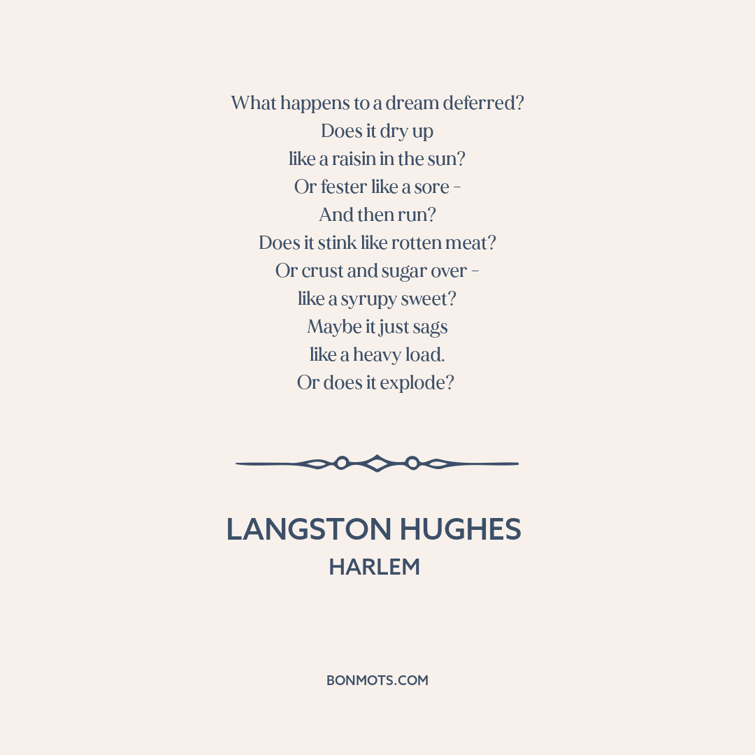 Hughes, Langston. "Harlem." Montage of a Dream Deferred. Holt, 1951.