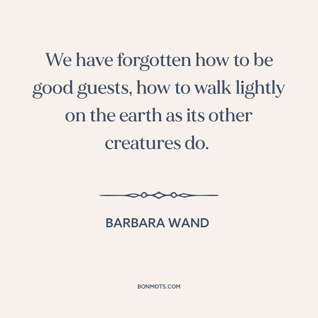 We have forgotten how to be good guests, how to walk lightly on the earth as its other creatures do.