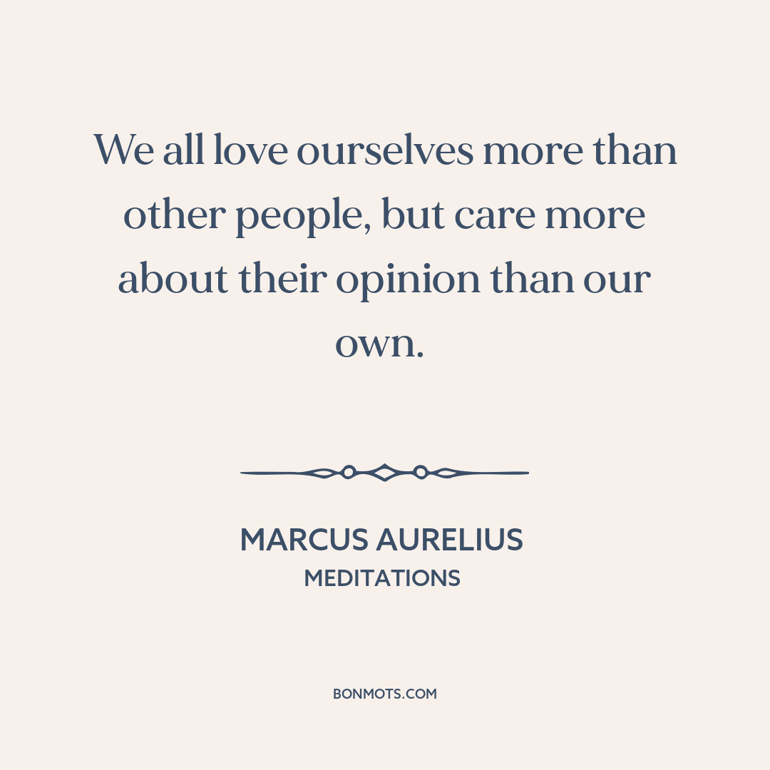 We all love ourselves more than other people, but care more about their opinion than our own.