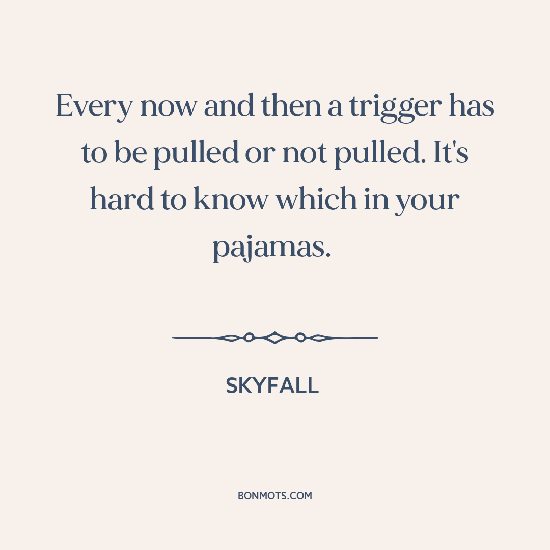 Every now and then a trigger has to be pulled or not pulled. It's hard to know which in your pajamas.