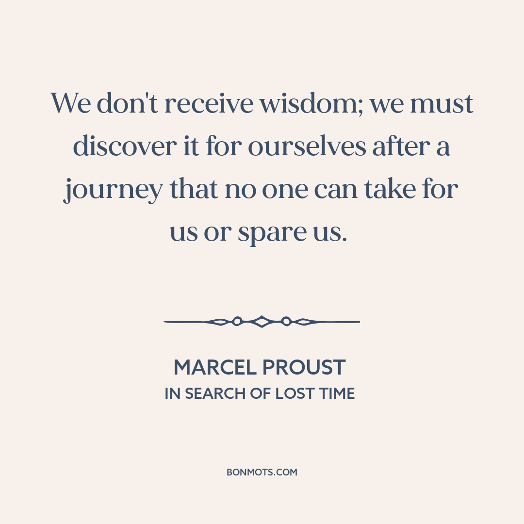 We don't receive wisdom; we must discover it for ourselves after a journey that no one can take for us or spare us.