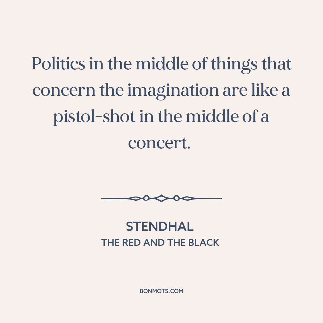 Politics in the middle of things that concern the imagination are like a pistol-shot in the middle of a concert.