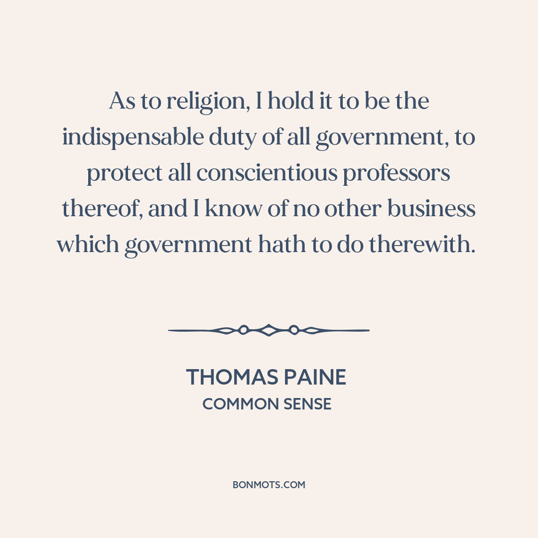 As to religion, I hold it to be the indispensable duty of all government, to protect all conscientious professors thereof, and I know of no other business which government hath to do therewith.