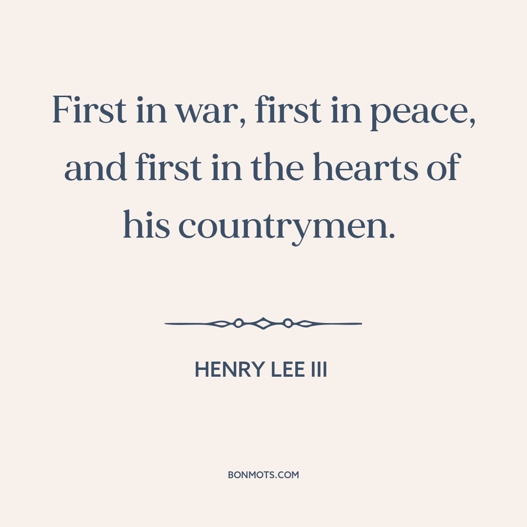First in war, first in peace, and first in the hearts of his countrymen.