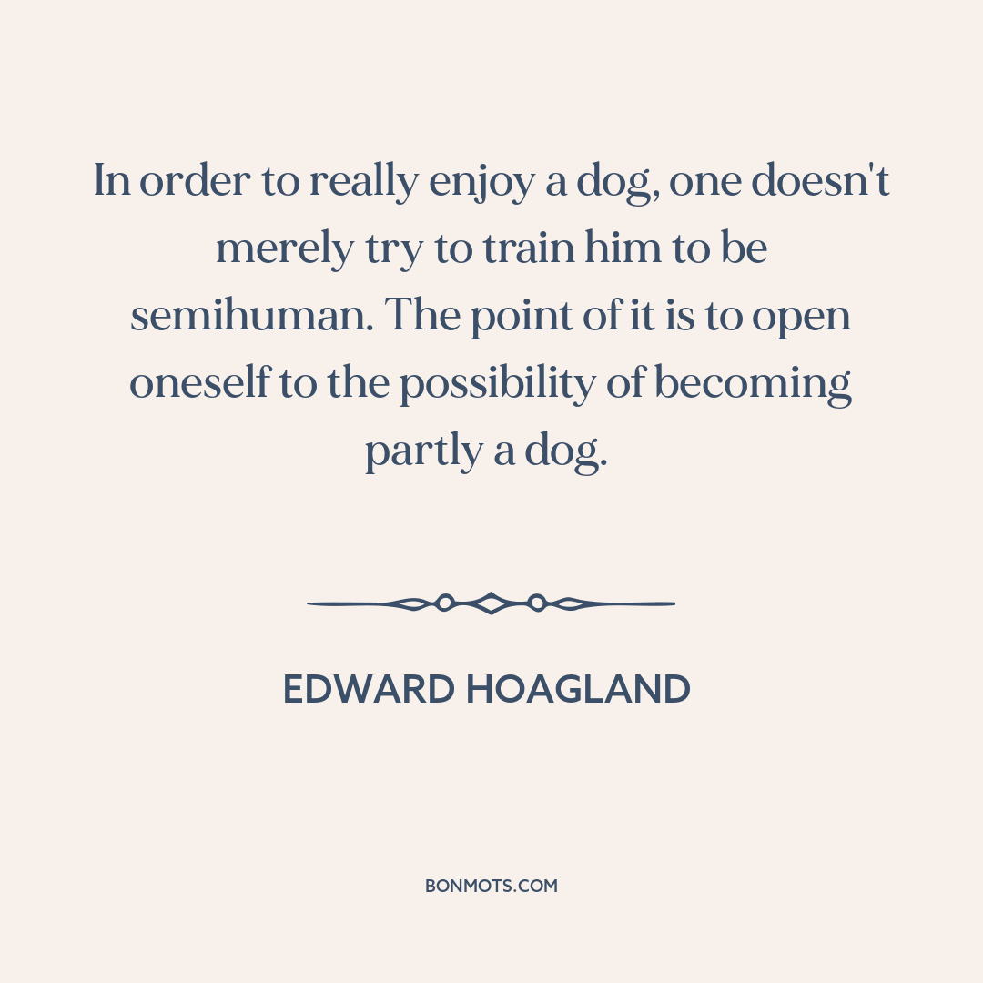 In order to really enjoy a dog, one doesn't merely try to train him to be semihuman. The point of it is to open oneself to the possibility of becoming partly a dog.