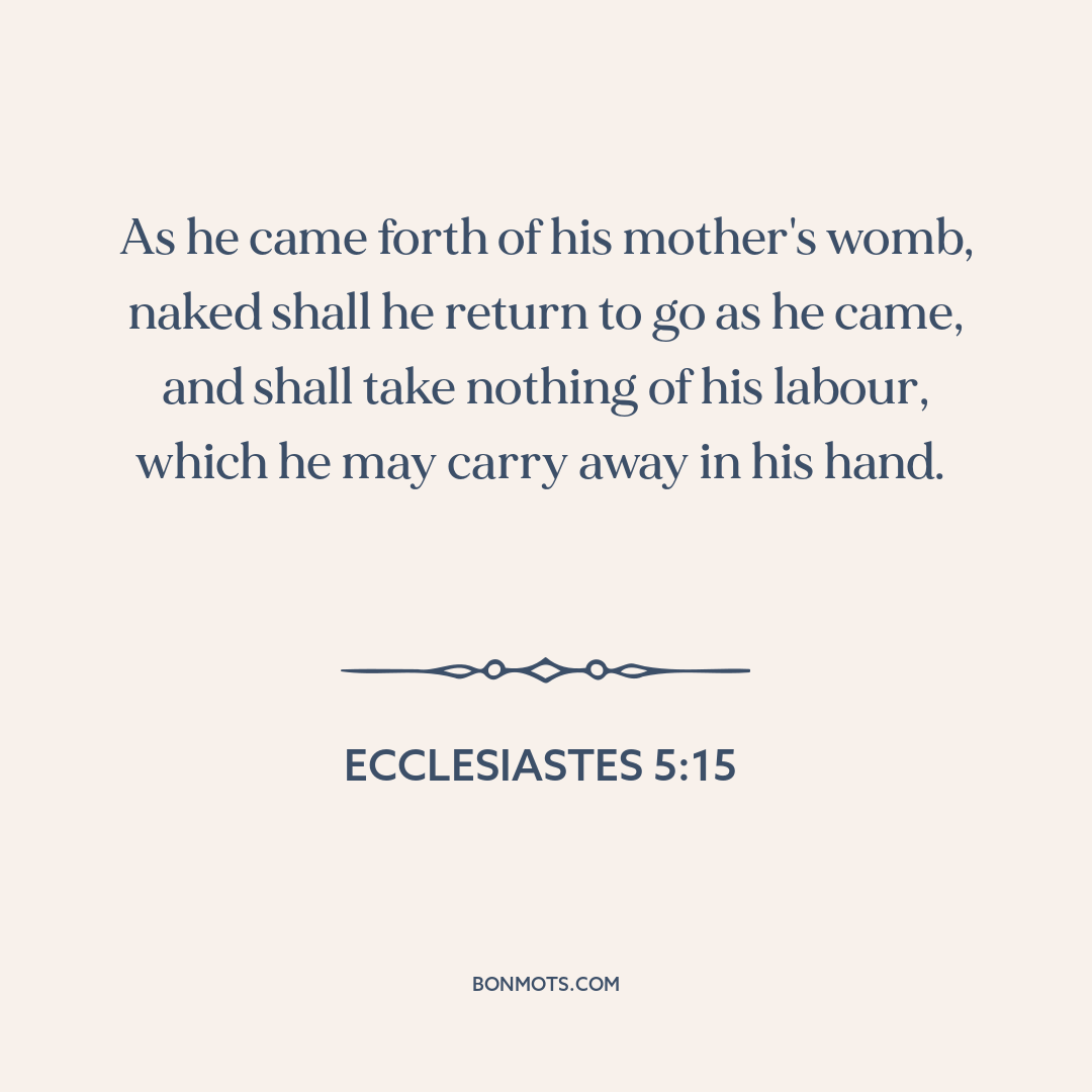 As he came forth of his mother's womb, naked shall he return to go as he came, and shall take nothing of his labour, which he may carry away in his hand.
