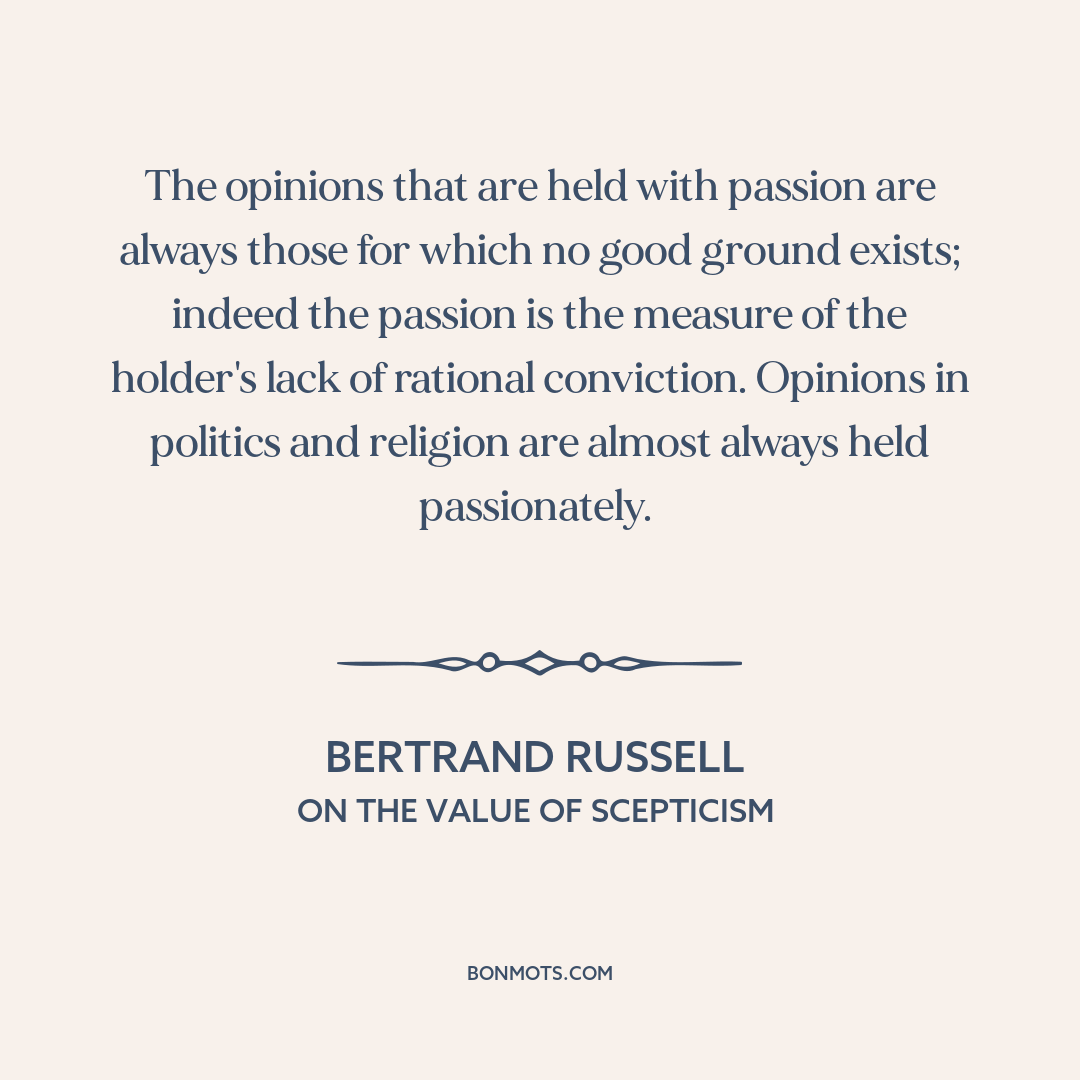 The opinions that are held with passion are always those for which no good ground exists; indeed the passion is the measure of the holder's lack of rational conviction. Opinions in politics and religion are almost always held passionately.