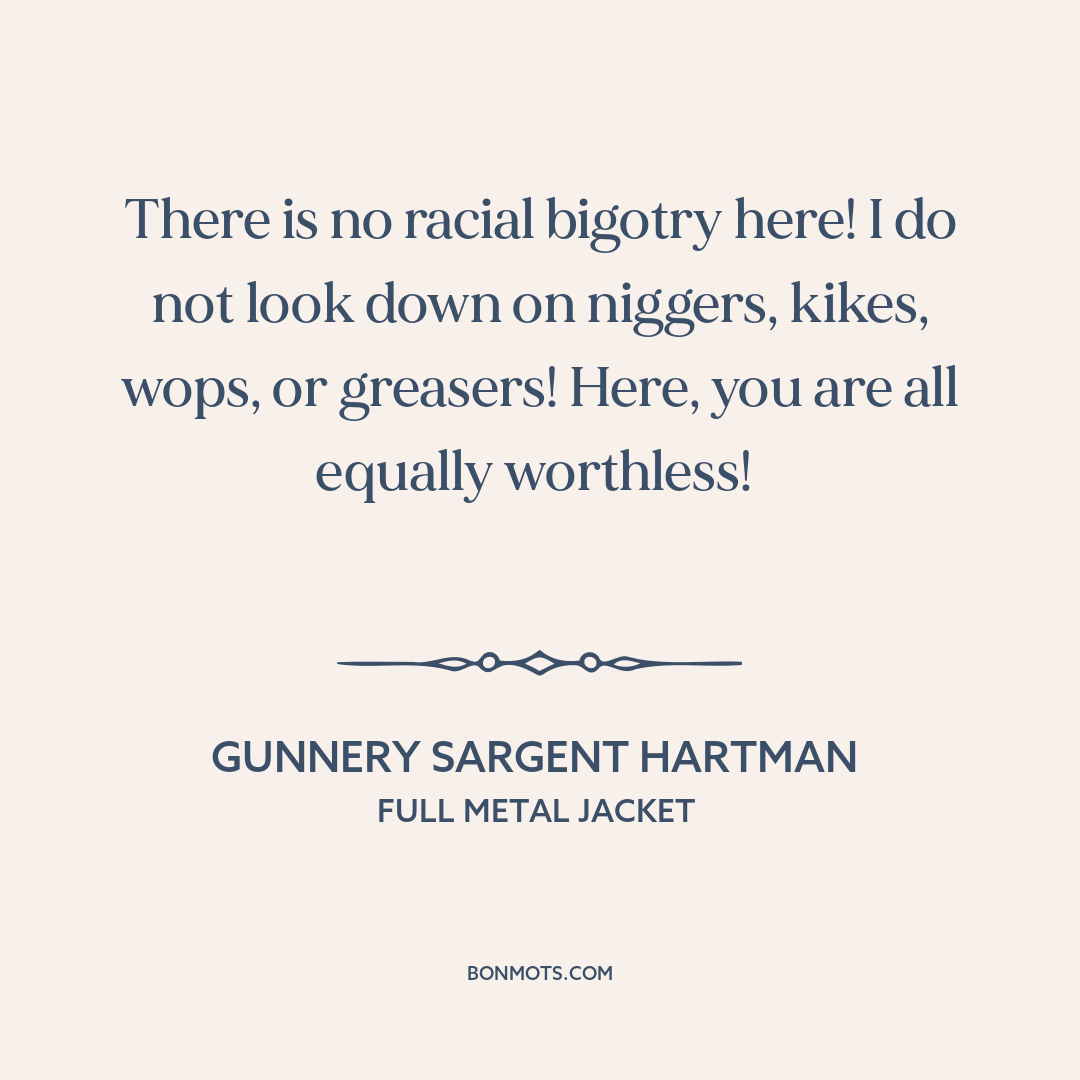 There is no racial bigotry here! I do not look down on niggers, kikes, wops, or greasers! Here, you are all equally worthless!
