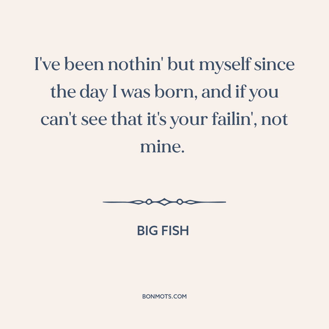 I've been nothin' but myself since the day I was born, and if you can't see that it's your failin', not mine.