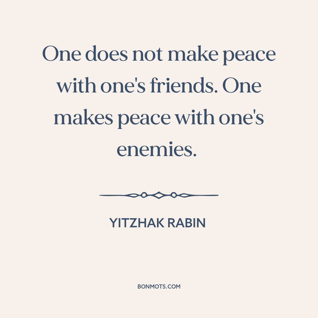 One does not make peace with one's friends. One makes peace with one's enemies.