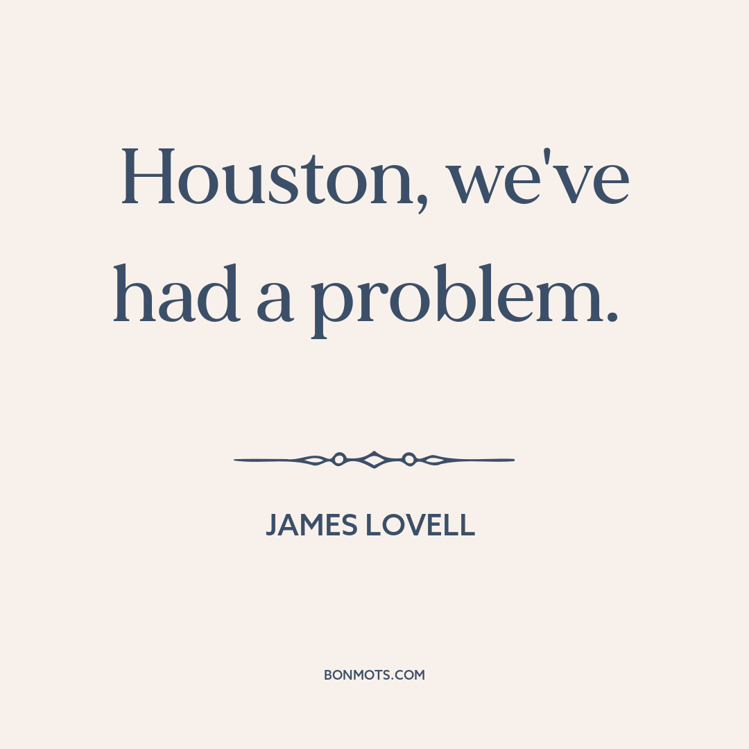 Lovell, James. Words spoken aboard Apollo 13 space mission. 13 Apr. 1970.