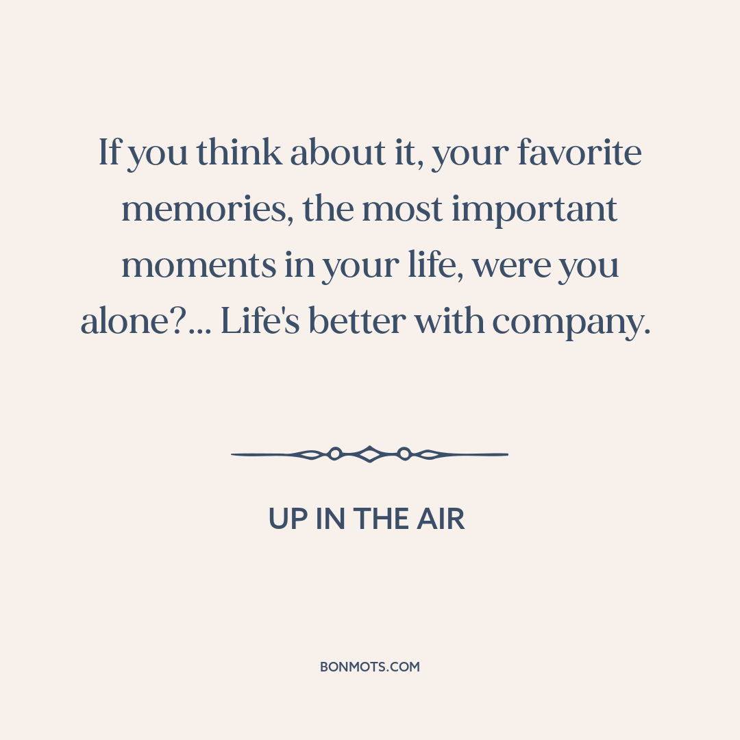 If you think about it, your favorite memories, the most important moments in your life, were you alone?... Life's better with company.
