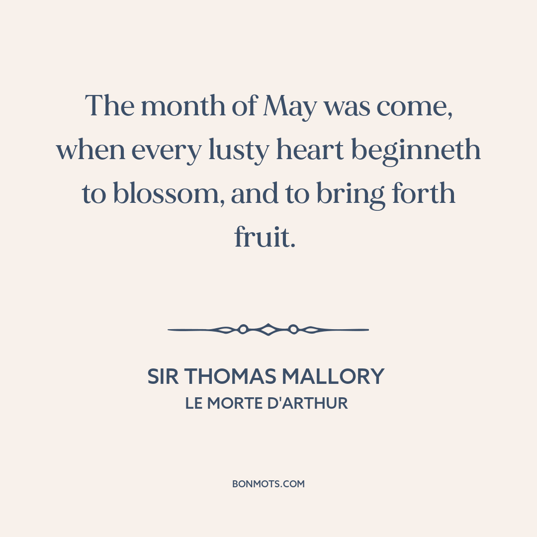 The month of May was come, when every lusty heart beginneth to blossom, and to bring forth fruit.