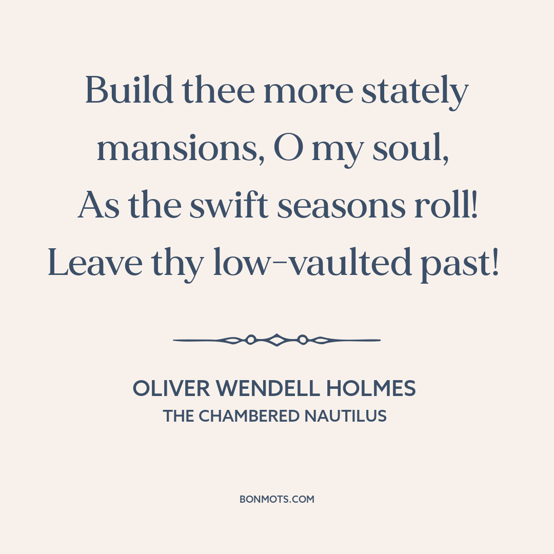 Holmes, Oliver Wendell, Sr. "The Chambered Nautilus." The Atlantic Monthly. Boston: Phillips, Sampson and Company, Feb. 1858, st. 5.