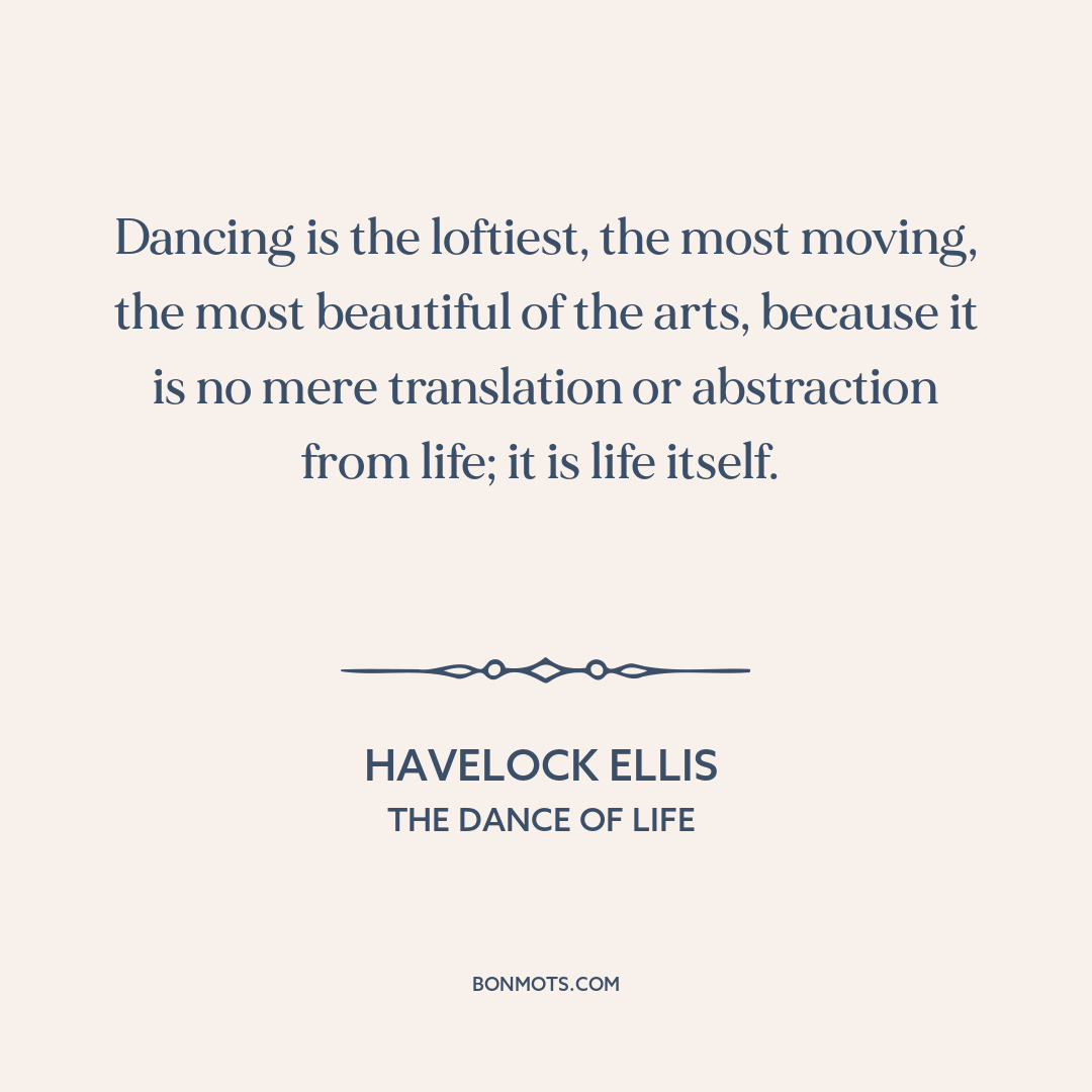 Dancing is the loftiest, the most moving, the most beautiful of the arts, because it is no mere translation or abstraction from life; it is life itself.