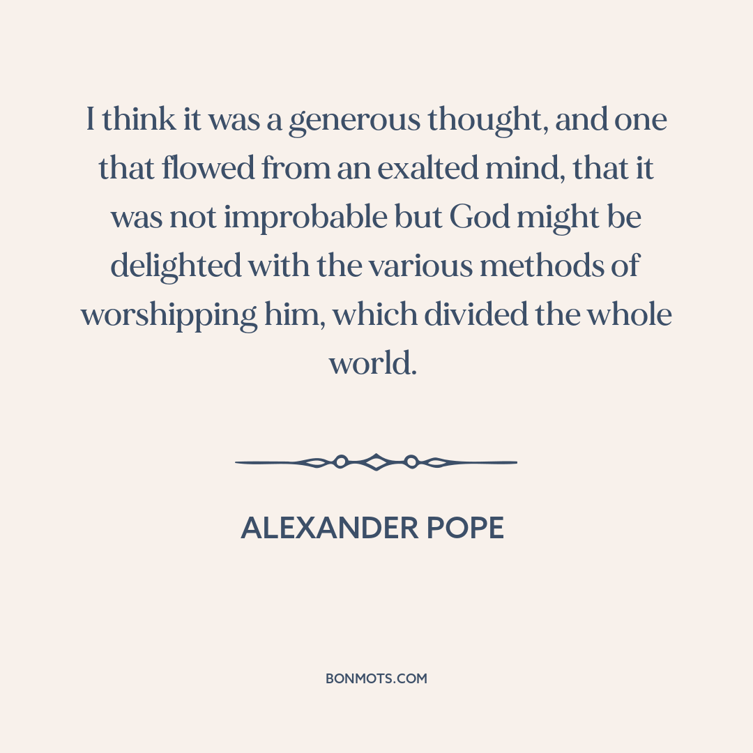 I think it was a generous thought, and one that flowed from an exalted mind, that it was not improbable but God might be delighted with the various methods of worshipping him, which divided the whole world.