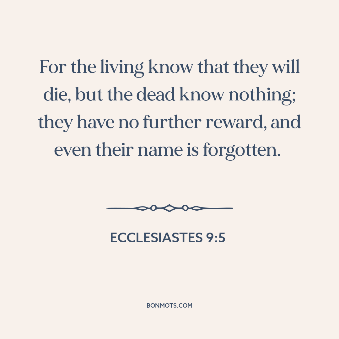For the living know that they will die, but the dead know nothing; they have no further reward, and even their name is forgotten.