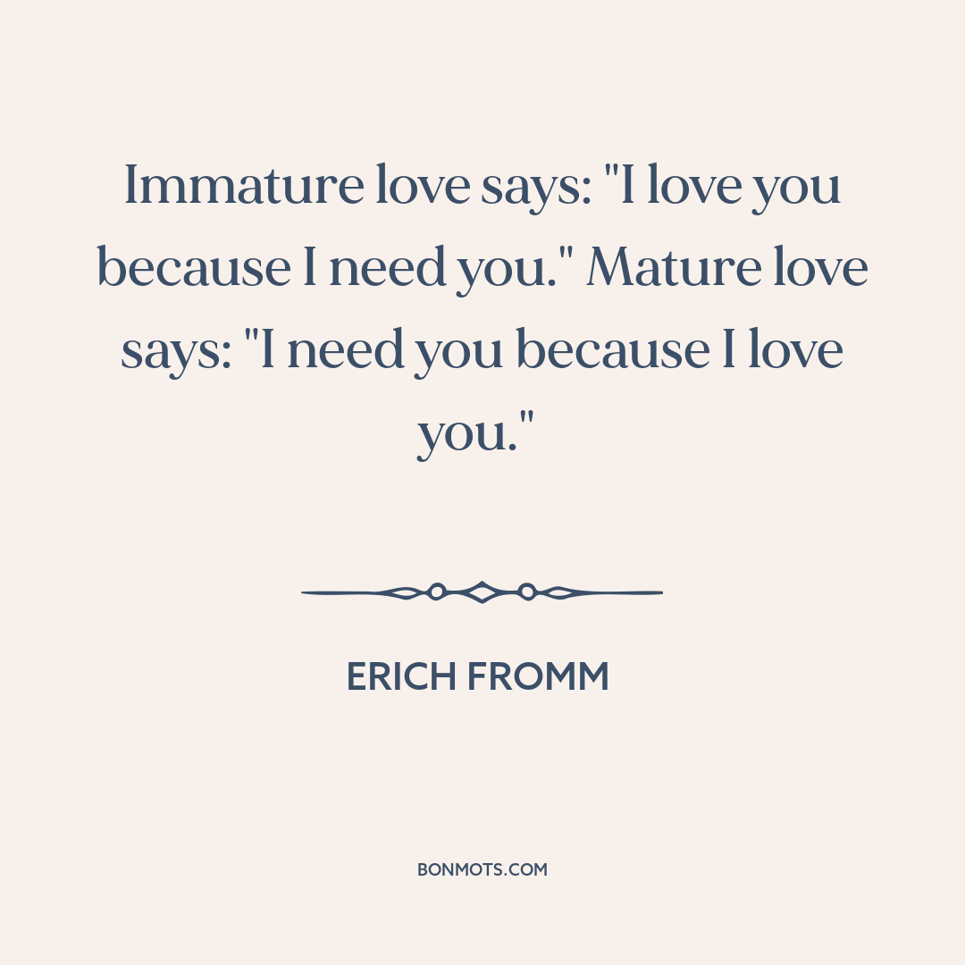 Immature love says: "I love you because I need you." Mature love says: "I need you because I love you."