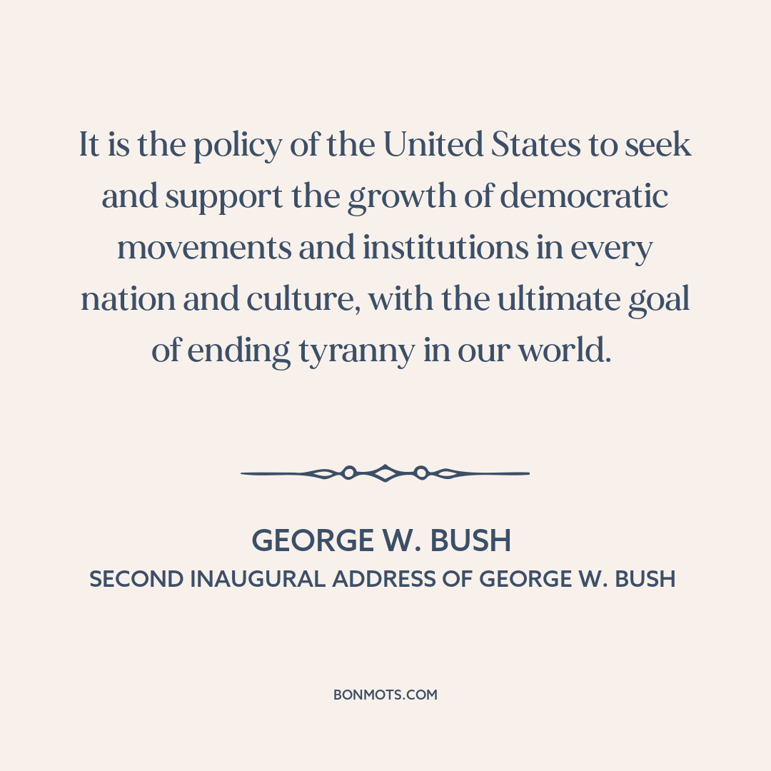 It is the policy of the United States to seek and support the growth of democratic movements and institutions in every nation and culture, with the ultimate goal of ending tyranny in our world.