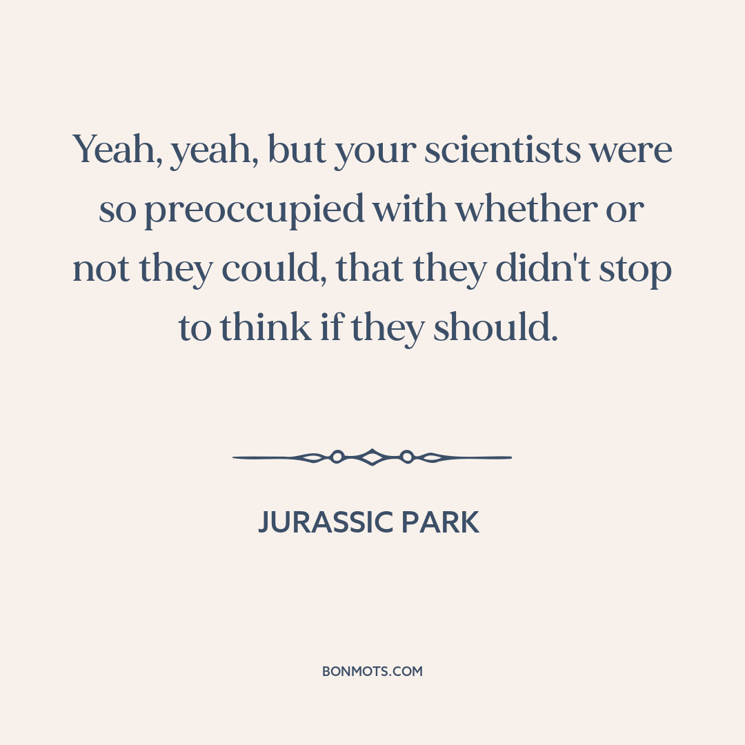 Yeah, yeah, but your scientists were so preoccupied with whether or not they could, that they didn't stop to think if they should.