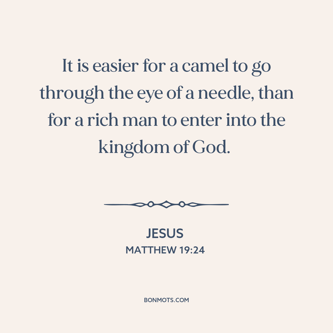 It is easier for a camel to go through the eye of a needle, than for a rich man to enter into the kingdom of God.