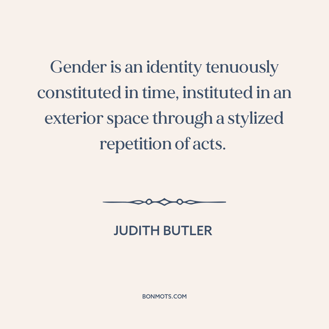Gender is an identity tenuously constituted in time, instituted in an exterior space through a stylized repetition of acts.