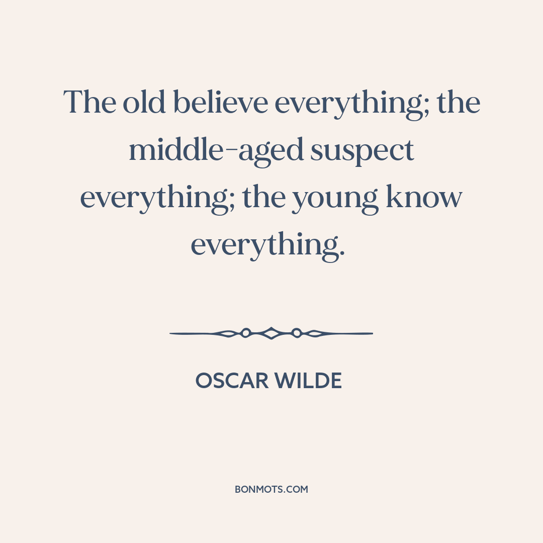 The old believe everything; the middle-aged suspect everything; the young know everything.