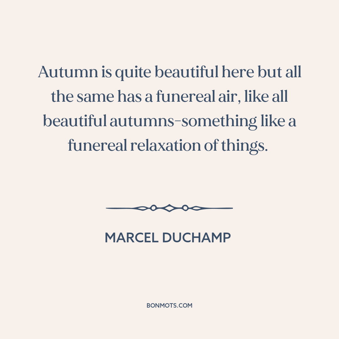 Autumn is quite beautiful here but all the same has a funereal air, like all beautiful autumns-something like a funereal relaxation of things.
