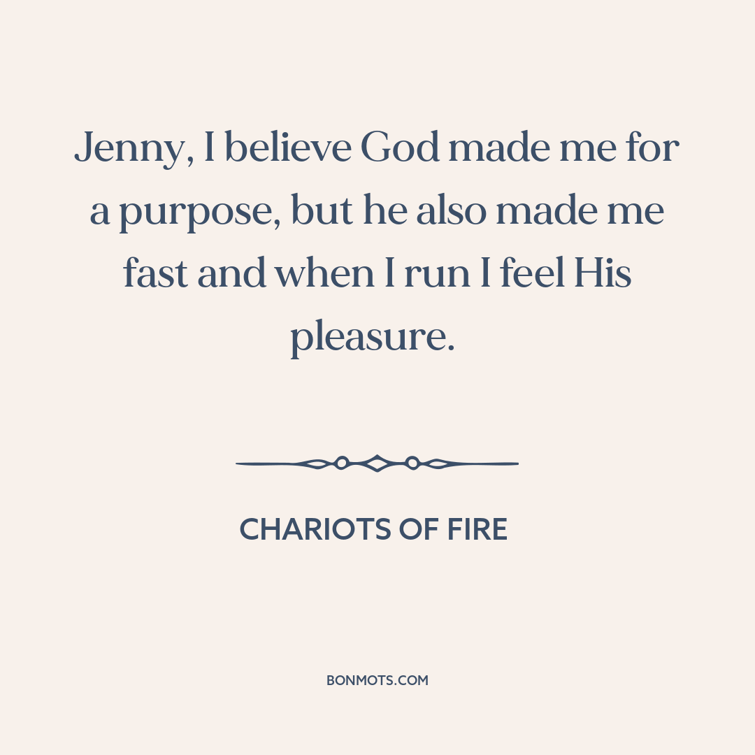 Jenny, I believe God made me for a purpose, but he also made me fast and when I run I feel His pleasure.