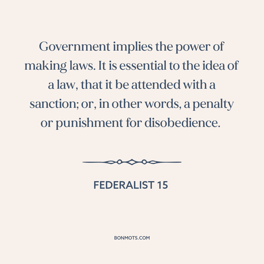 Government implies the power of making laws. It is essential to the idea of a law, that it be attended with a sanction; or, in other words, a penalty or punishment for disobedience.