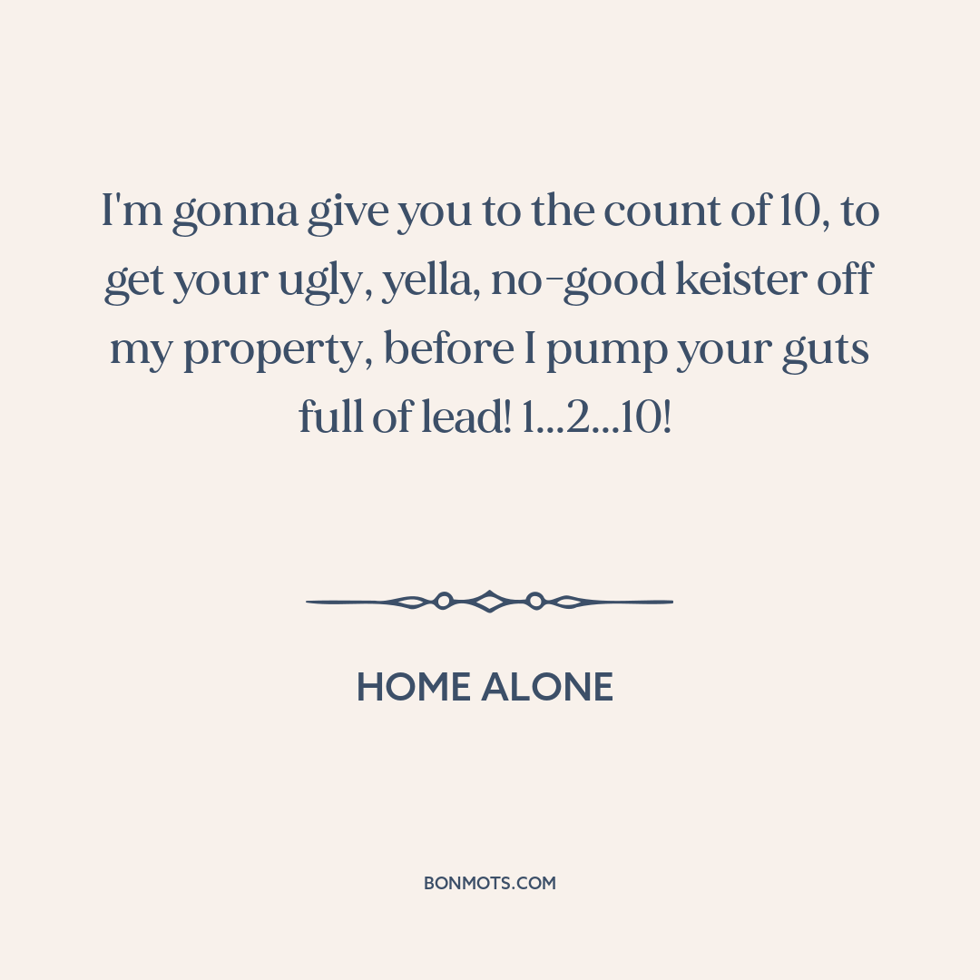 I'm gonna give you to the count of 10, to get your ugly, yella, no-good keister off my property, before I pump your guts full of lead! 1...2...10!