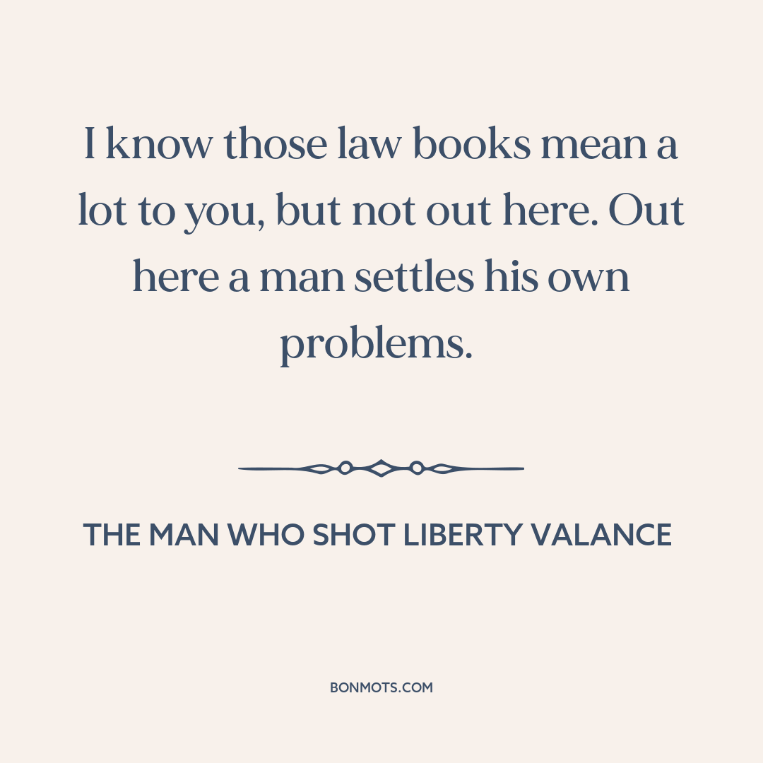 I know those law books mean a lot to you, but not out here. Out here a man settles his own problems.
