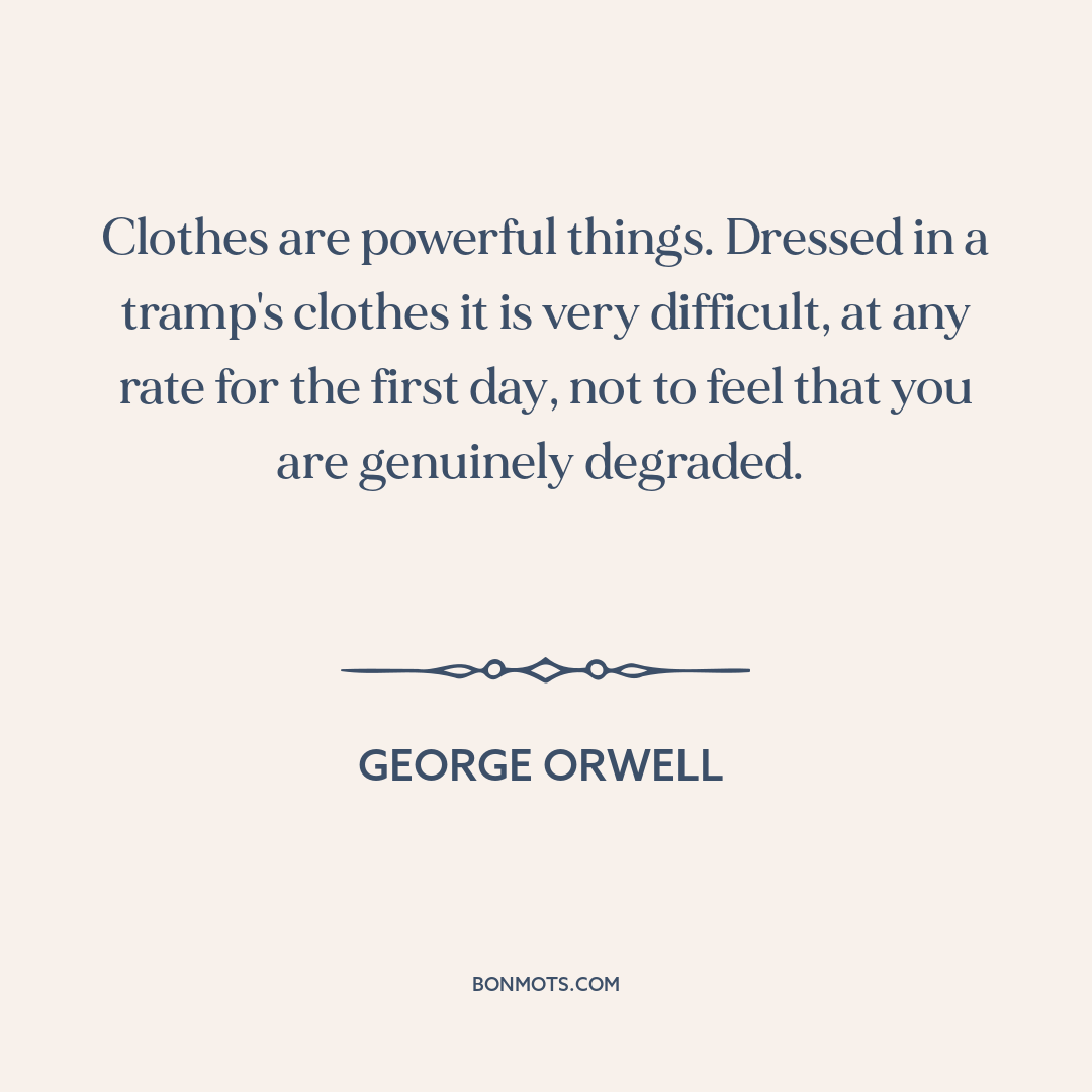 Clothes are powerful things. Dressed in a tramp's clothes it is very difficult, at any rate for the first day, not to feel that you are genuinely degraded.
