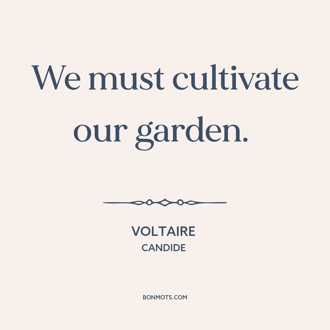 Voltaire. Candide, ou l'Optimisme [Candide: or, All for the Best]. Geneva: Gabriel Cramer, 1759, ch. 30.