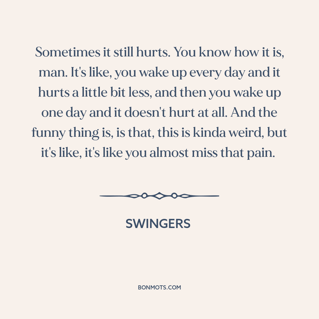 Sometimes it still hurts. You know how it is, man. It's like, you wake up every day and it hurts a little bit less, and then you wake up one day and it doesn't hurt at all. And the funny thing is, is that, this is kinda weird, but it's like, it's like you almost miss that pain.