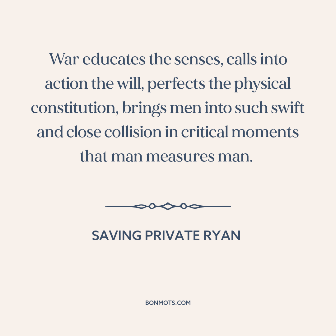 War educates the senses, calls into action the will, perfects the physical constitution, brings men into such swift and close collision in critical moments that man measures man.