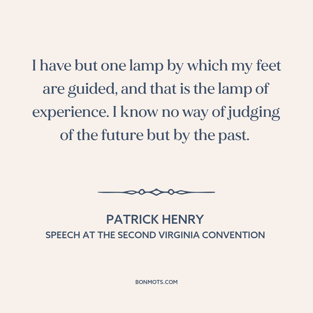 I have but one lamp by which my feet are guided, and that is the lamp of experience. I know no way of judging of the future but by the past.
