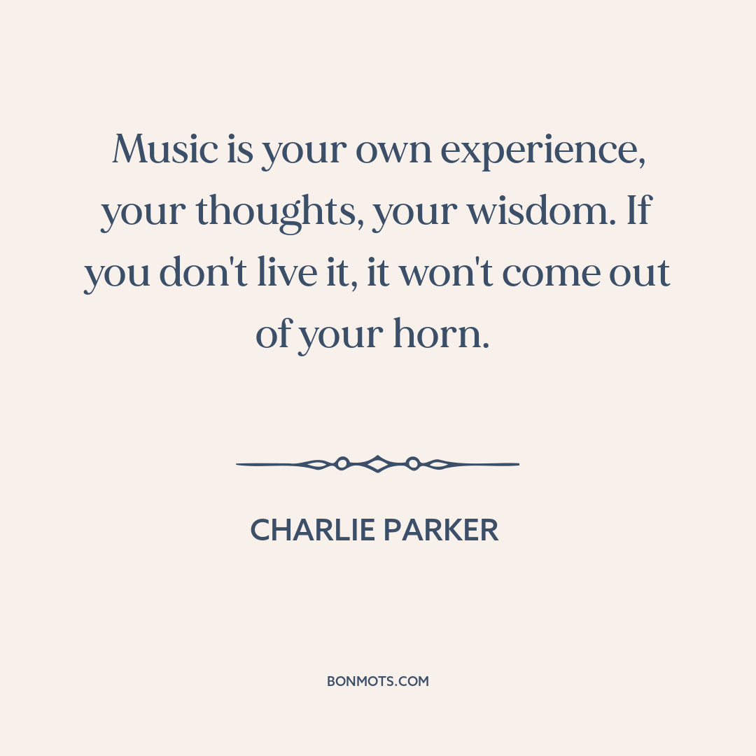 Music is your own experience, your thoughts, your wisdom. If you don't live it, it won't come out of your horn.