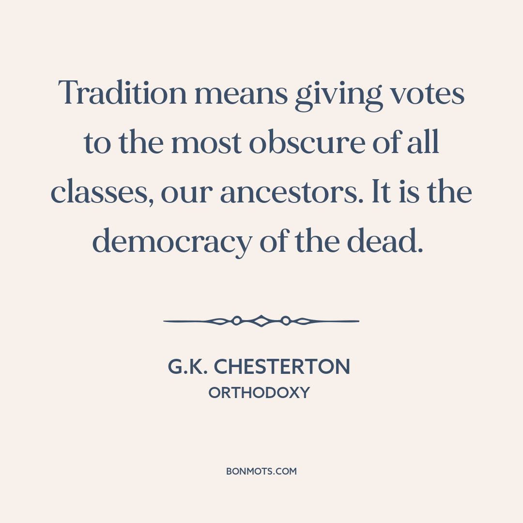 Tradition means giving votes to the most obscure of all classes, our ancestors. It is the democracy of the dead.